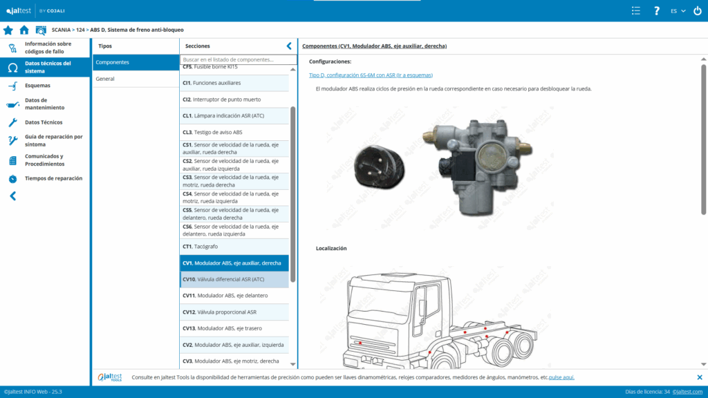 Jaltest no es solo una herramienta de lectura; es una plataforma completa de diagnóstico multimarca dedicada a vehículos comerciales, especialmente camiones. Permite comprender el origen de las averías mediante un análisis detallado del código de error, incluyendo las posibles causas, los síntomas asociados y el procedimiento de reparación recomendado.